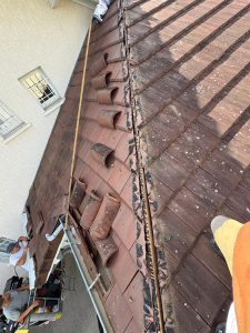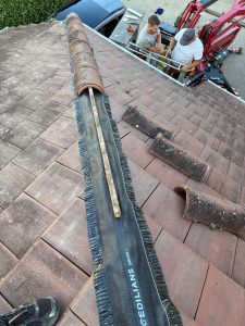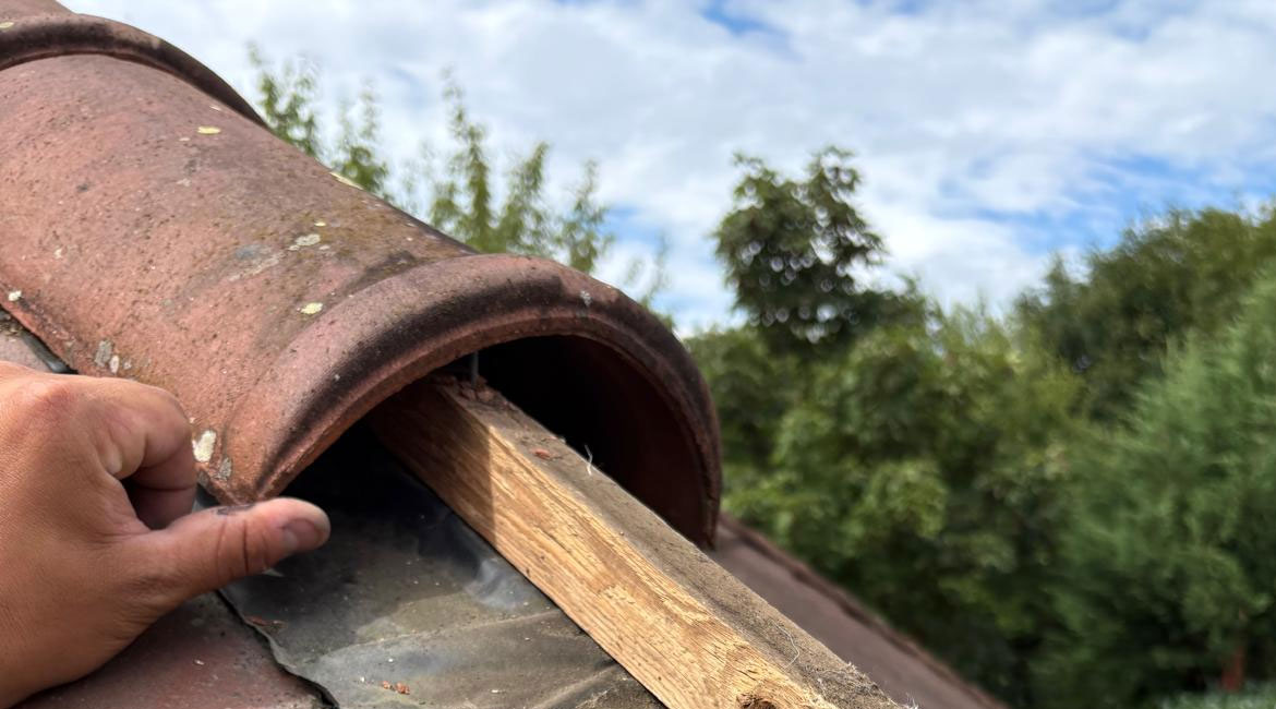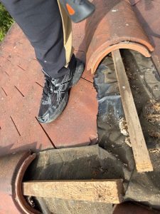 Une fois les tuiles retirées, nous avons supprimé l’ancien système d’étanchéité devenu obsolète. Nous avons ensuite procédé au remplacement du closoir, élément clé du faîtage.